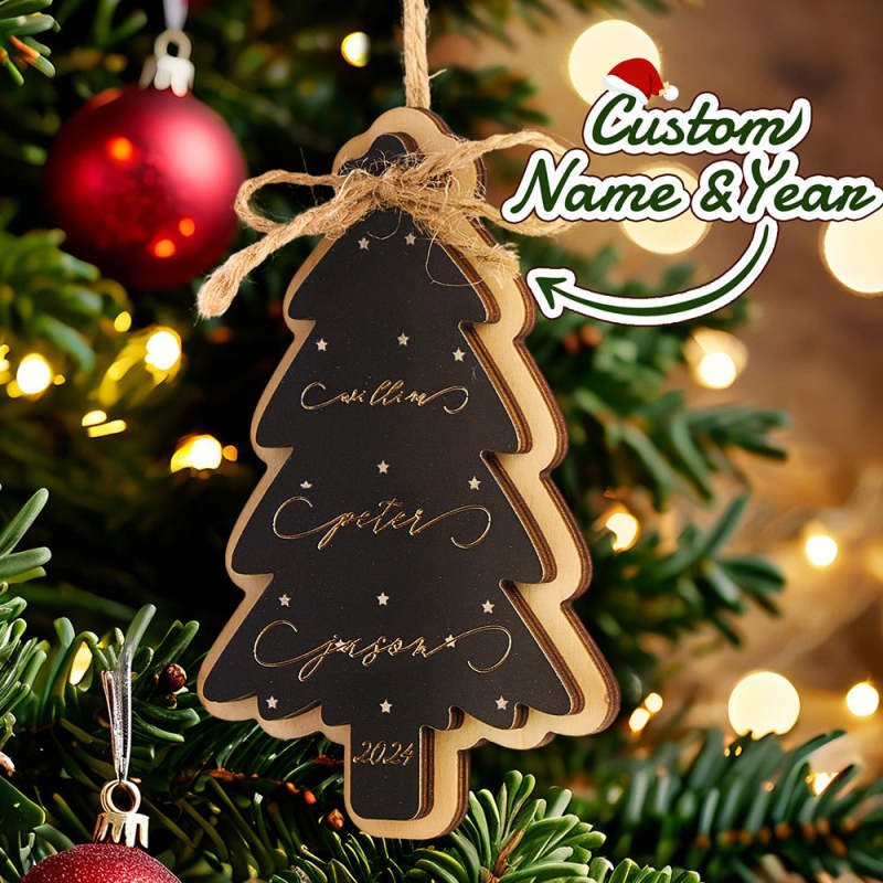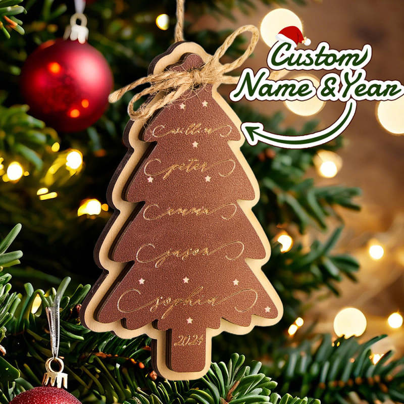 This personalized family Christmas ornament is the perfect addition to your holiday decor. Featuring a Christmas tree design with space to add your family names, this ornament can be personalized for a festive touch. This ornament is a durable and meaningful keepsake for years to come.