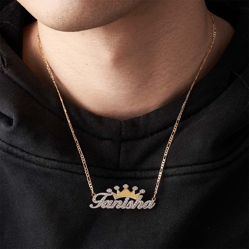 Personalized Hip Hop Name Necklace With Crown Metal Necklace Gifts for Men