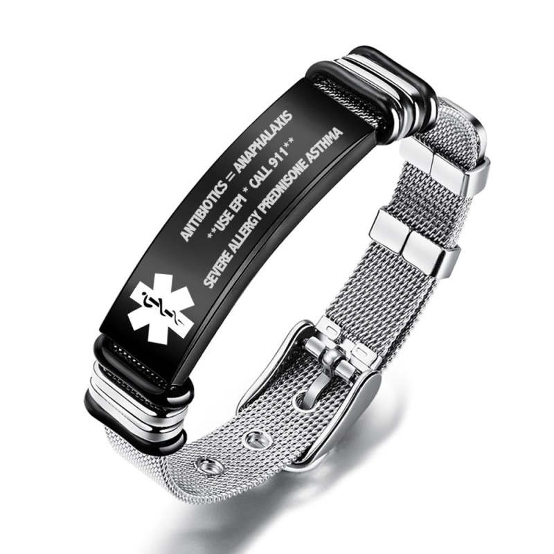 Personalized MEDICAL ID BRACELET Custom Engraved Alert Jewelry Emergency Contact Fathers Day Gifts For Him
