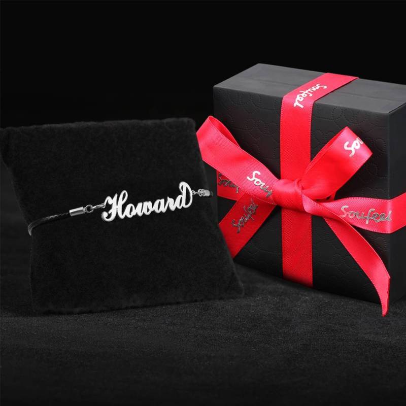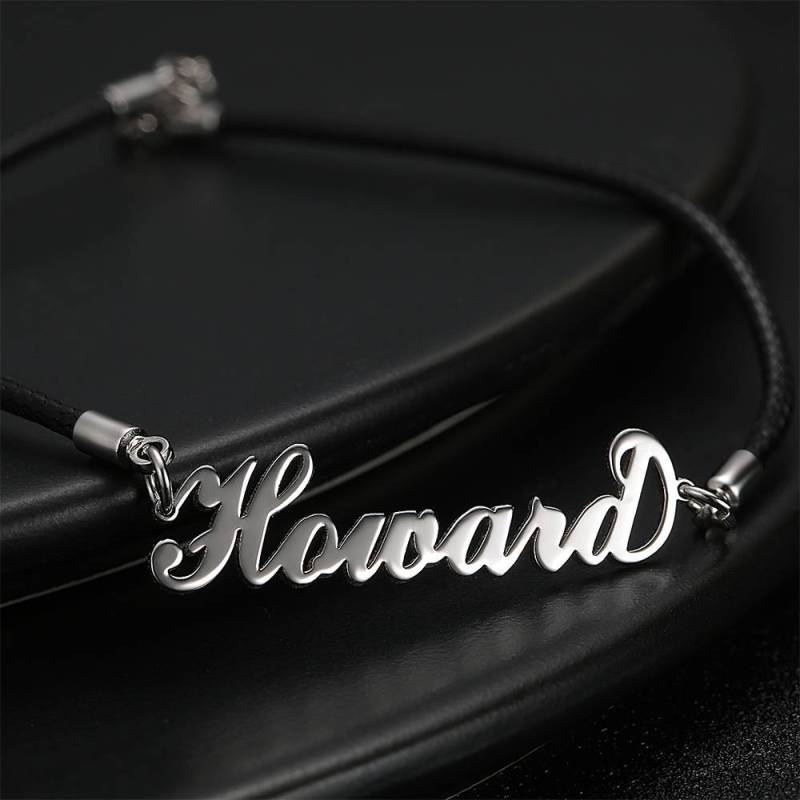 Men's Leather Bracelet Personalized Name Bracelet, Any Name Bracelet Platinum Plated Silver - Men