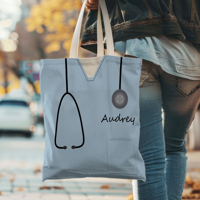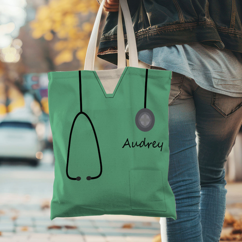 Example: Imagine presenting this tote bag to a nurse with her name beautifully embroidered on it. It would surely bring a smile to her face and make her feel truly valued.