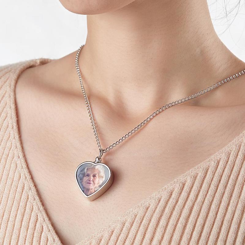 This Heart Shaped Urn Necklace Can Be Customized with a Colorful Commemorative Picture on the Front Side. A Special Date, Name or Short Words of Respect and Love Can Be Engraved on the Back Side.