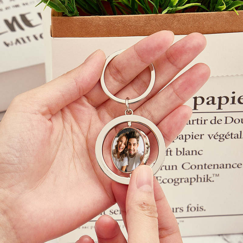 Surprise your loved one with a personalized photo keychain! This custom turnable double sided keychain features your own photos for a beautiful and unique gift that is sure to be cherished for a lifetime. Perfect for any occasion, show your appreciation with a personalized keepsake.