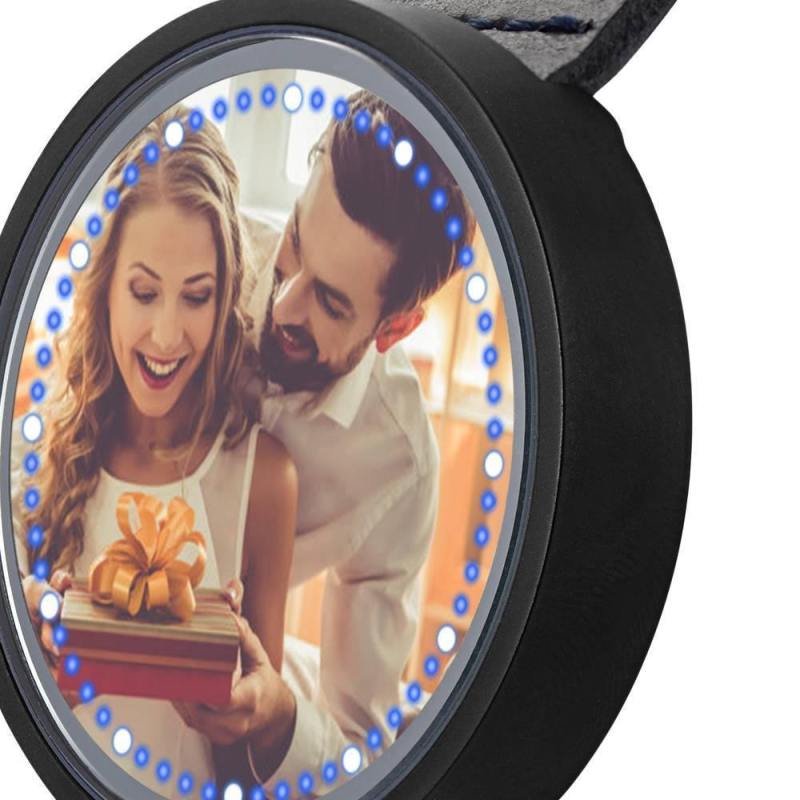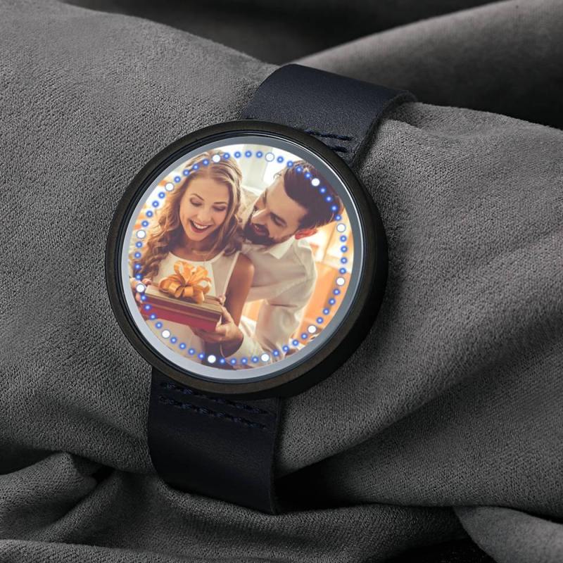 Surprise your loved one with a custom photo watch which is purely custom made to fit any personality. The image of design is directly printed onto the inside of watch surface. Once you place an order, you'll be able to preview how it will appear on the watch. Please do remember high resolution picture will come out better than the preview. This custom photo watch cannot be refunded once we start the making process. A custom photo watch always makes a great gift and will never go out of style. Buy yours today! Personalized Photo Watch, Touch Illuminated Watch Blue Leather Strap Couple's Gift.