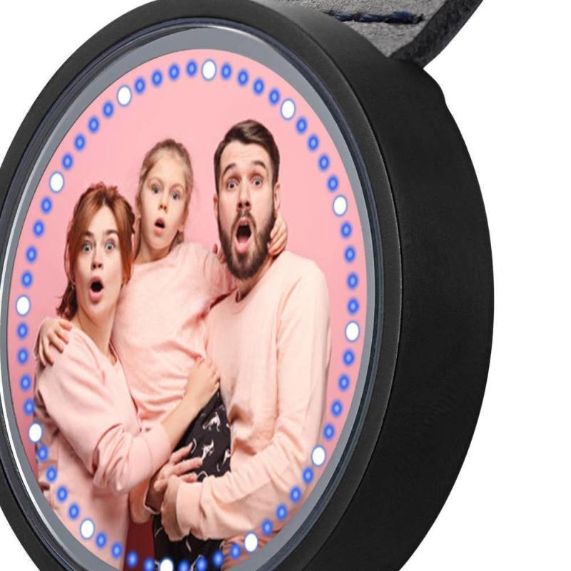 Surprise your loved one with a custom photo watch which is purely custom made to fit any personality. The image of design is directly printed onto the inside of watch surface. Once you place an order, you'll be able to preview how it will appear on the watch. Please do remember high resolution picture will come out better than the preview. This custom photo watch cannot be refunded once we start the making process. A custom photo watch always makes a great gift and will never go out of style. Buy yours today! Personalized Photo Watch, Touch Illuminated Watch LED Blue Leather Strap.