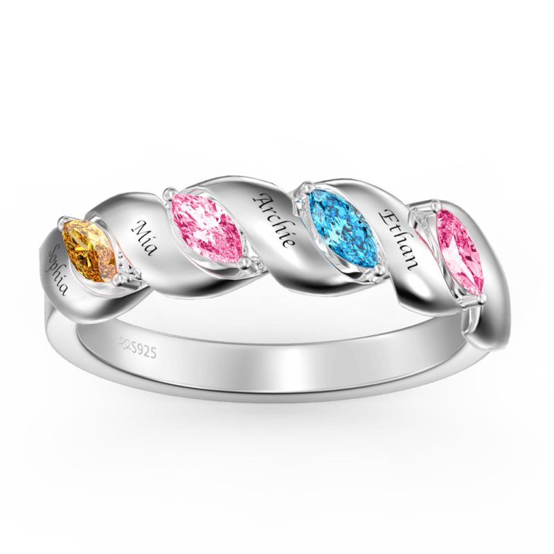 Personalised Birthstone Mother's Ring with Engraving Silver