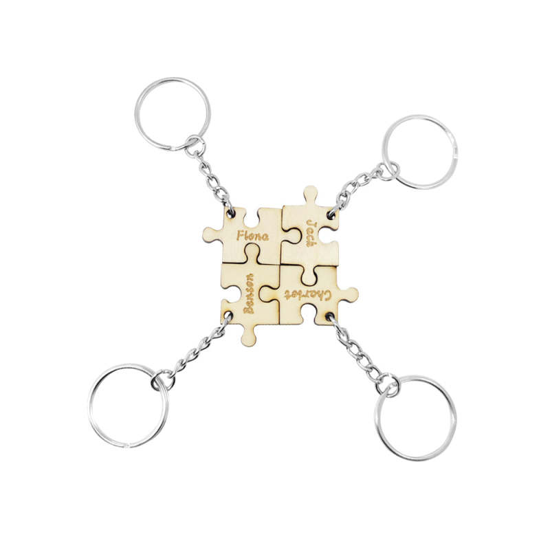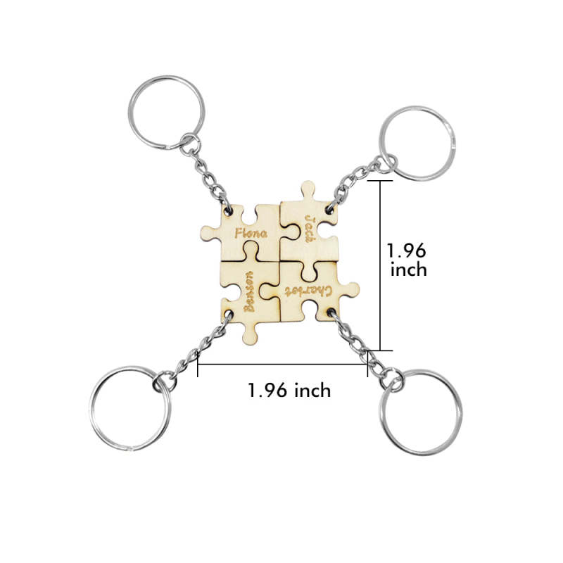 This is a lovely personalized keychain, including 4 puzzle parts keychains. Personalized your special keychain to your family. Carve your name on it. Take the keychain with you and you will feel connected to them. This will be the best gift for them on anniversaries, birthdays, etc.