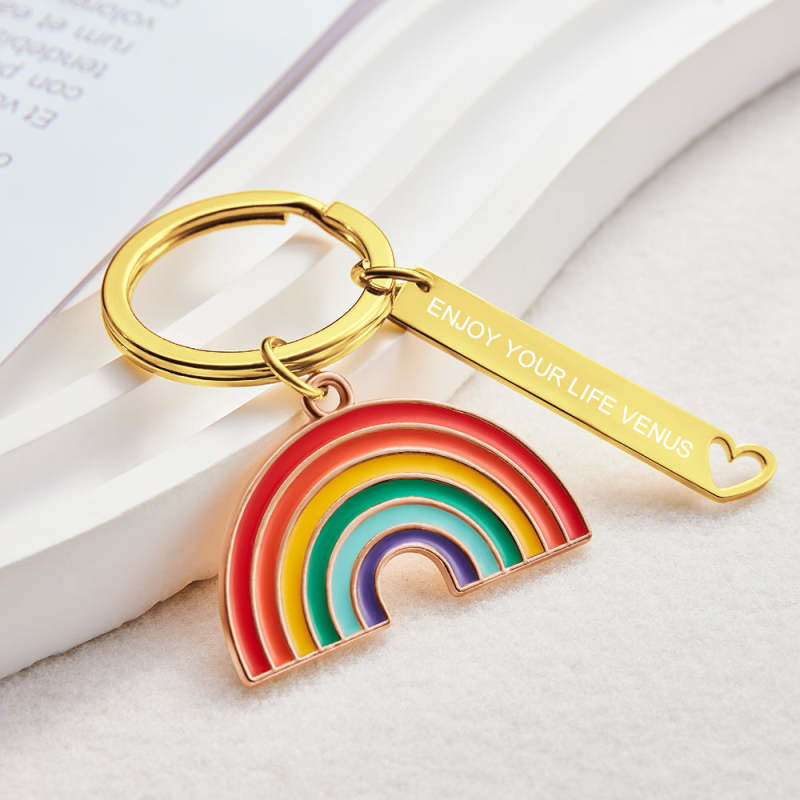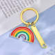 This simple and stylish gold rainbow keyring would make the perfect gift for any colorful person. It's the perfect way to brighten up a day. This bedazzled rainbow fashion accessory can be used as a key chain, a purse charm, or a sparkly backpack charm.