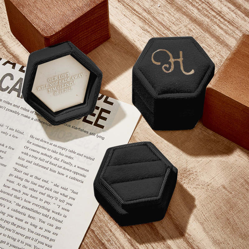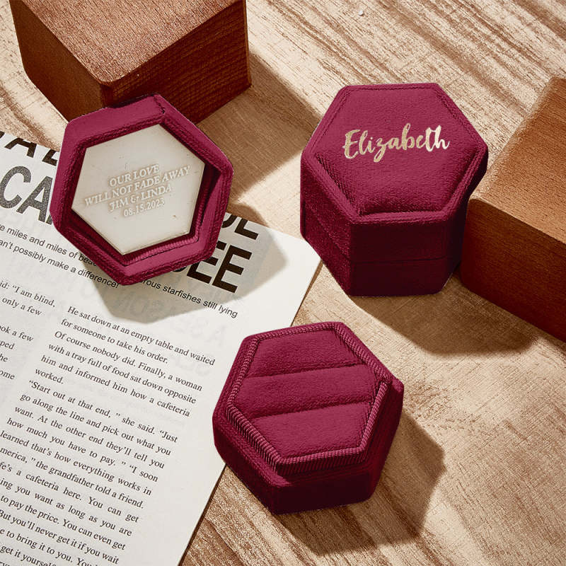 Our ring box is a luxurious and elegant accessory to store and display your precious rings. Made from high-quality material, it has a soft and smooth texture that provides gentle cushioning for your rings, preventing them from scratches and damage. The ring box adds a touch of glamour to any dressing table or jewelry collection. It is not only a practical storage solution but also a beautiful decorative piece that showcases the beauty and value of your rings.