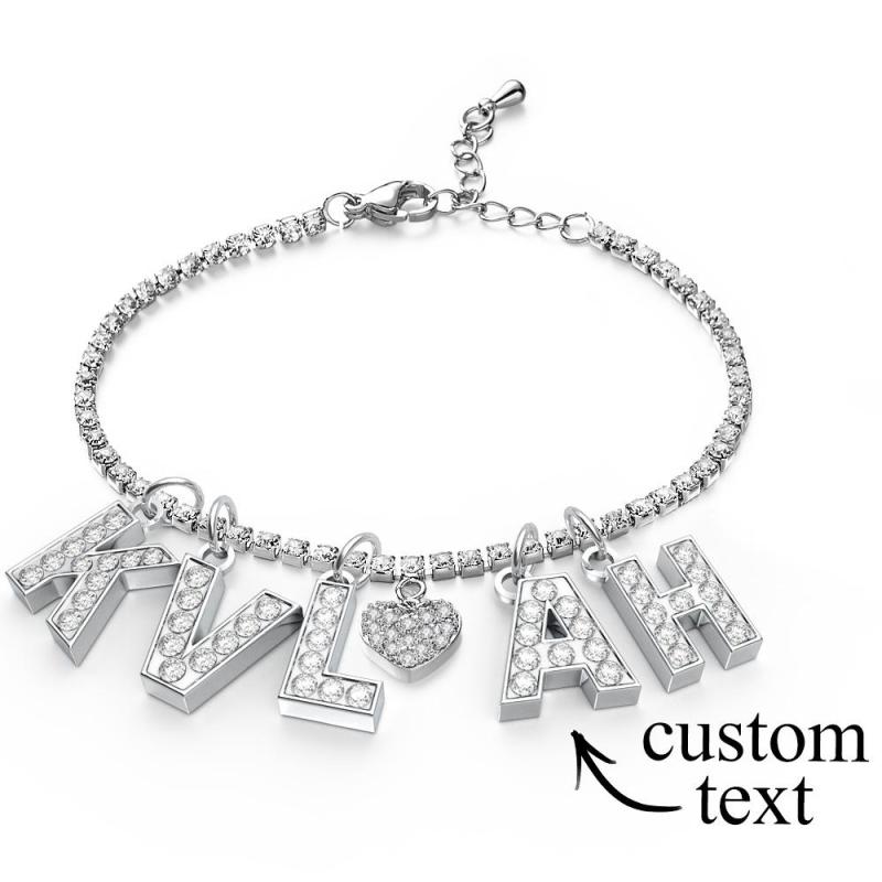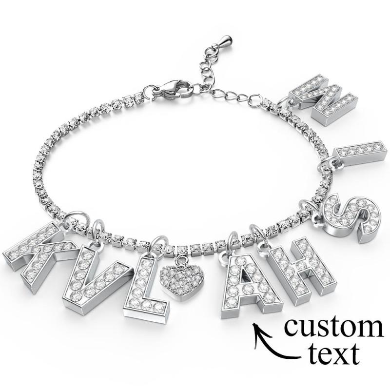 Simple and refined, this marvelous Callie anklet interprets the delicate beauty of woman’s ankle. White crystals embellished on the initials sparkle brilliantly in many facets. Up to 8 Letters,All letters are capitalized by default.Complemented by a shimmering finish, the elegant design makes it perfect for dressing up your style, adding a radiant touch of glamour to your look.