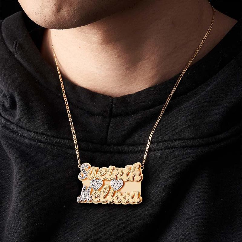 Personalized Two Lines Name Necklace Hip Hop Metal Jewelry Necklace Gifts for Men