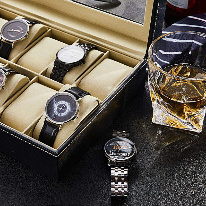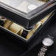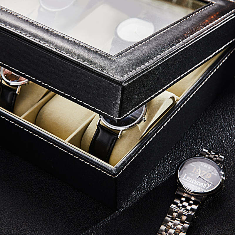 Give your watches a home they deserve with this solid, sleek watch box. Our refreshing design carefully incorporates deep ridges, straight lines, and a real glass display.