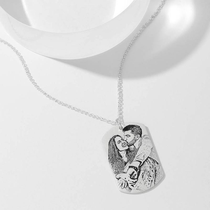Women's Photo Engraved Tag Necklace with Engraving Silver