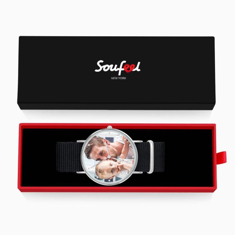Surprise your loved one with a custom photo watch which is purely custom made to fit any personality. The image of design is directly printed onto the inside of watch surface. A custom photo watch always makes a great gift and will never go out of style. We can personalise the reverse of the watch with a message, Carefully engraved, it forever remembers your message.This watch is our signature masterpiece, the perfect fusion of minimalism and sophistication. Dressed up or down, it's sure to punctuate the look and will make a perfect gift for your loved ones, or even a treat for yourself! Soufeel has a ton of customized jewelry options that are reasonably priced and make for great gifts for all sorts of occasions like birthdays, holidays, anniversaries,mother's birthday gift. Photo Engraved Watch, Custom Photo Watch with Black Strap - Women
