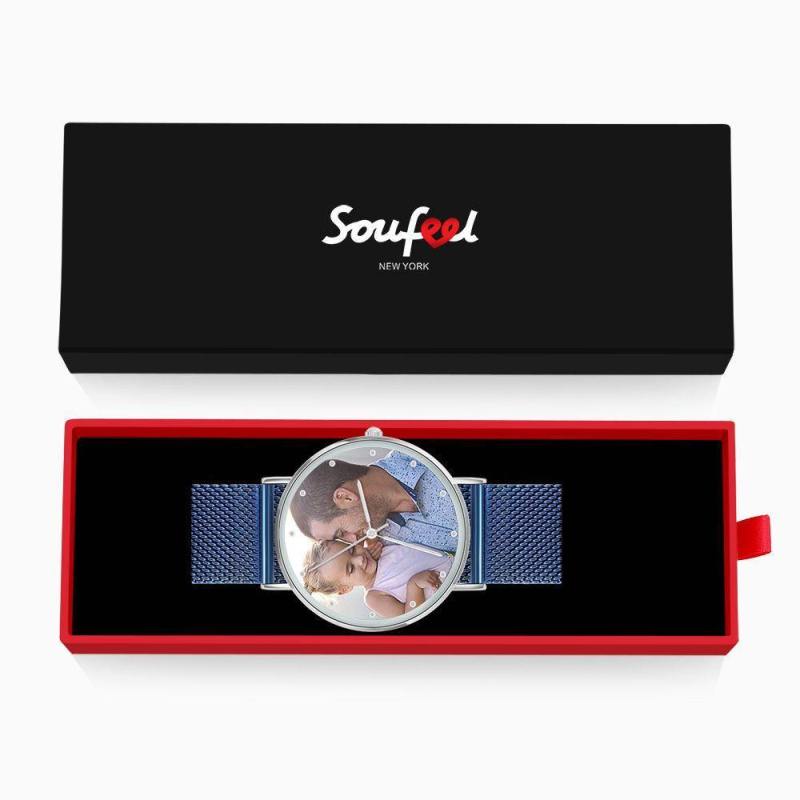 Surprise your loved one with a custom photo watch which is purely custom made to fit any personality. The image of design is directly printed onto the inside of watch surface. A custom photo watch always makes a great gift and will never go out of style. We can personalise the reverse of the watch with a message, Carefully engraved, it forever remembers your message.This watch is our signature masterpiece, the perfect fusion of minimalism and sophistication. Dressed up or down, it's sure to punctuate the look and will make a perfect gift for your loved ones, or even a treat for yourself! Soufeel has a ton of customized jewelry options that are reasonably priced and make for great gifts for all sorts of occasions like birthdays, holidays, anniversaries,mother's birthday gift. Photo Engraved Watch, Custom Your Own Photo Watch with Blue Strap - Women.