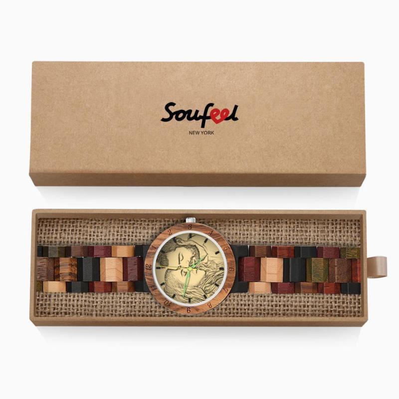 Photo Engraved Wooden, Photo Watch Wooden Strap 45mm Sketch Effect Colorful Wood for Men's