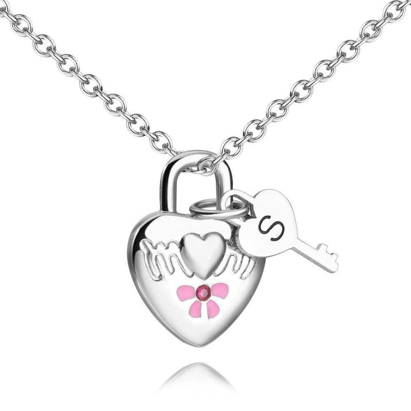 Photo Heart Lock and Key Necklace with Engraving