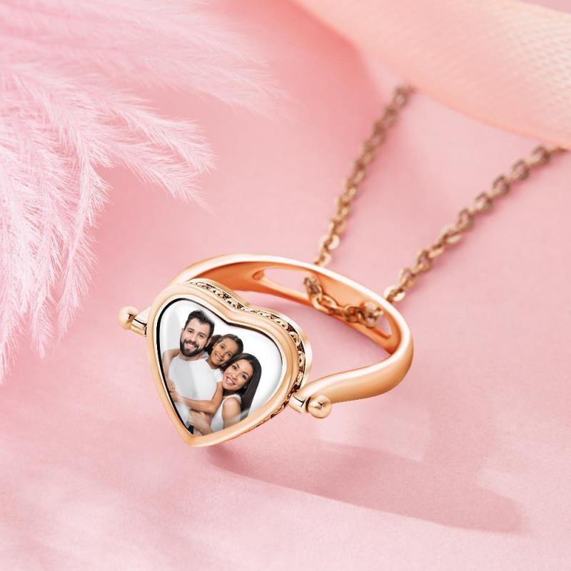 Photo Necklace, Photo Ring Couple's Gifts Dual-use (Ring Size 8#) Rose Gold Plated