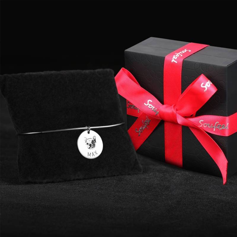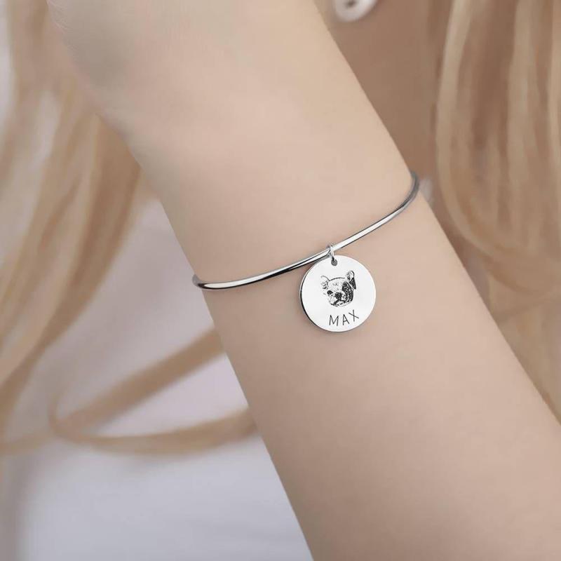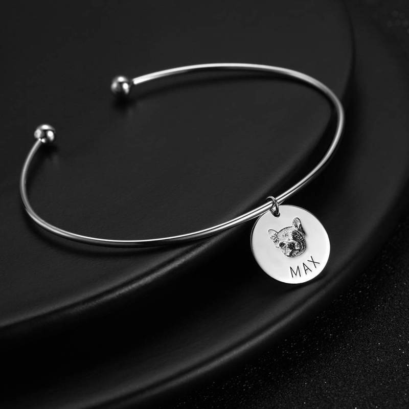 Photo Portrait Bangle with Engraving Round Shape, Custom Portrait Jewellery Platinum Plated - Silver