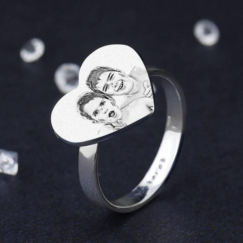 Photo Ring with Engraving Platinum Plated Silver, Always Love You