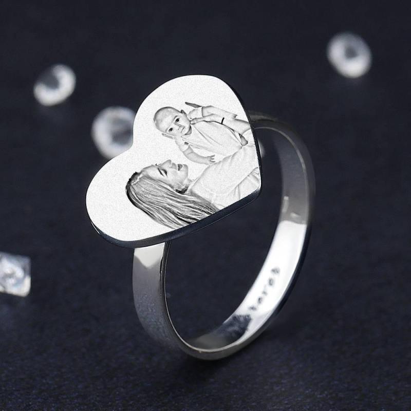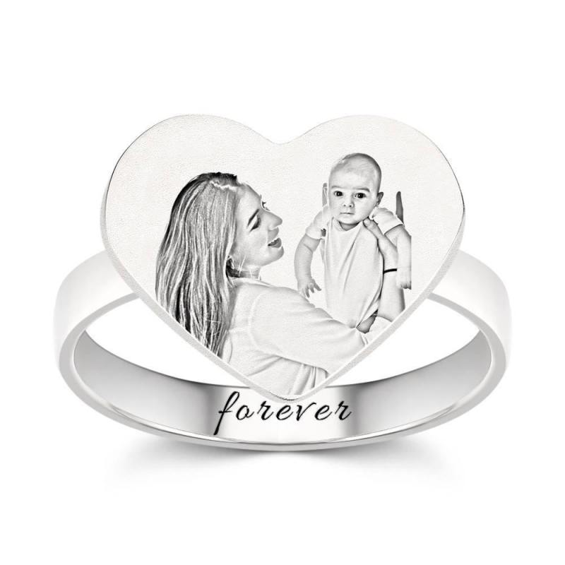 Photo Ring with Engraving Platinum Plated Silver, Best Mom