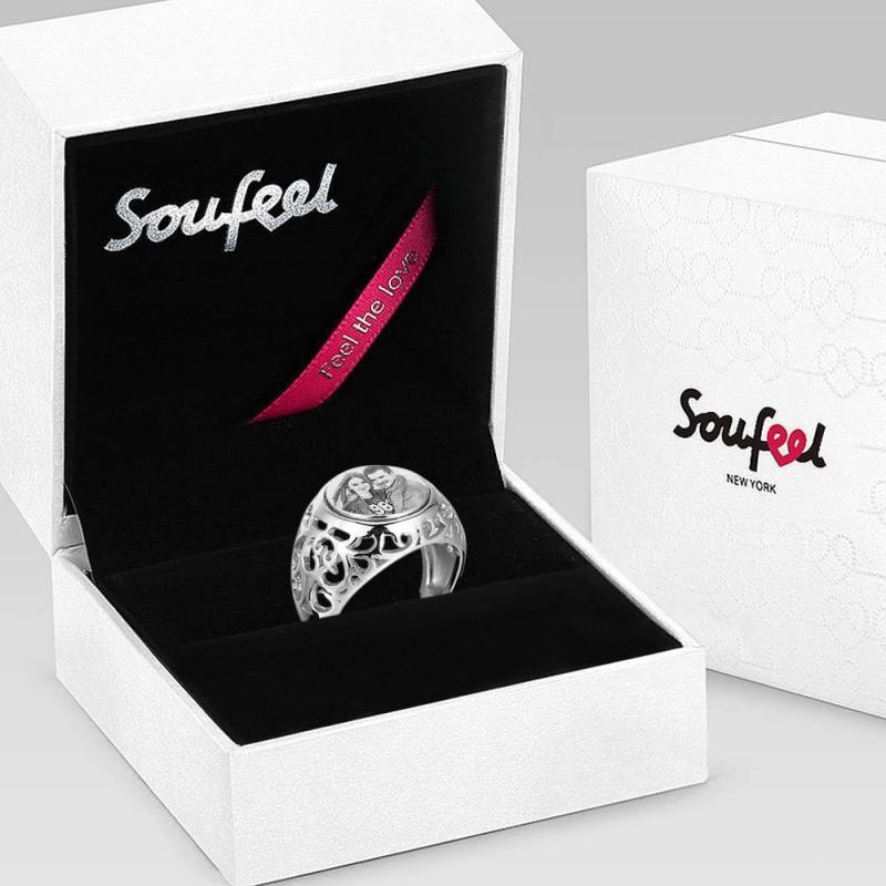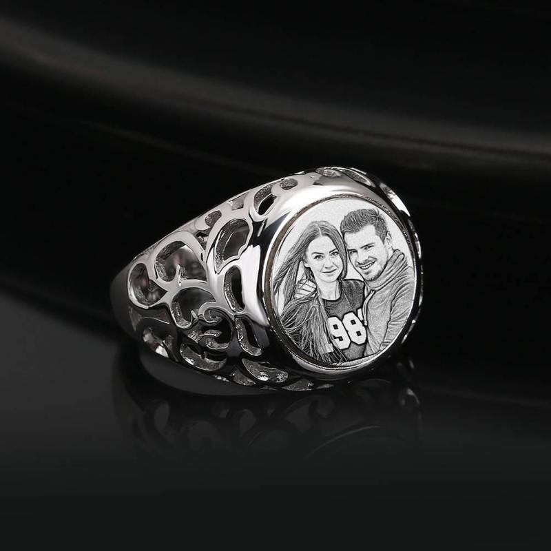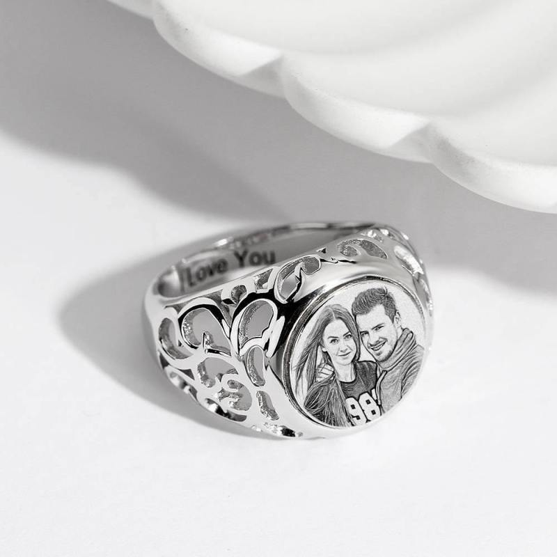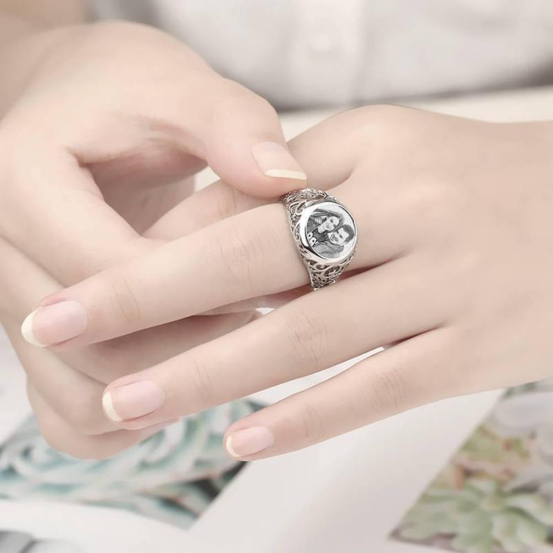 Photo Ring with Engraving Platinum Plated Silver Oval-shaped, Girlfriend Gift