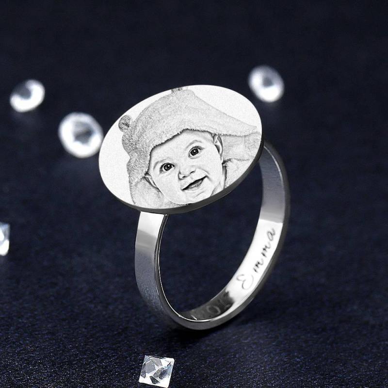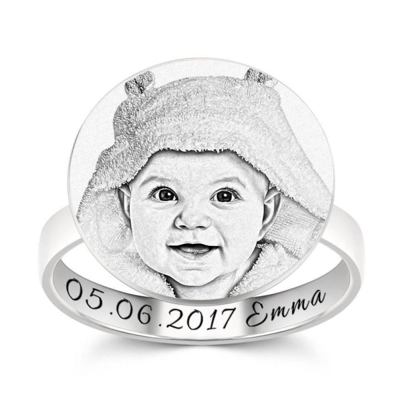 Photo Ring with Engraving Round-shaped Platinum Plated Silver, Always Love You