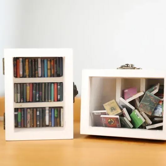 Pocket Edition Anxiety Bookcase, MINI bookcase, Miniature Landscape, Miniature Bookcase, Book Lover Gift, Study Decoration