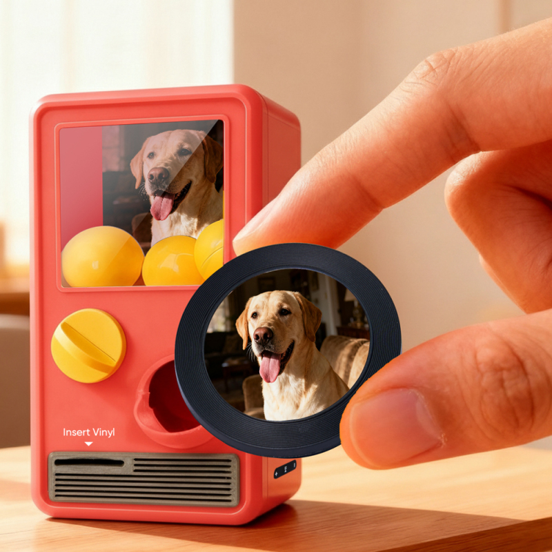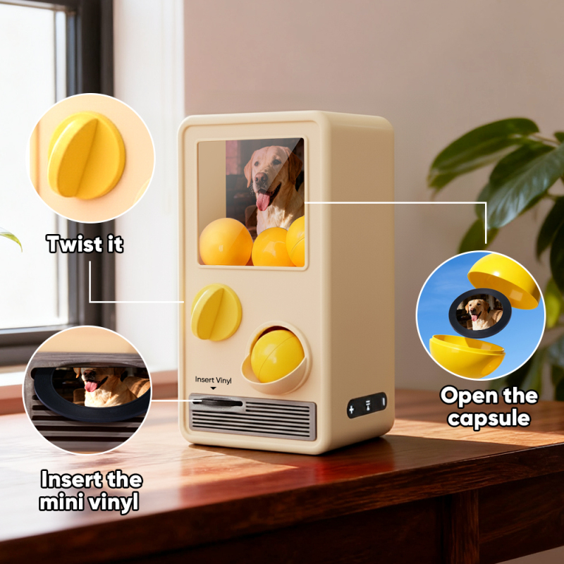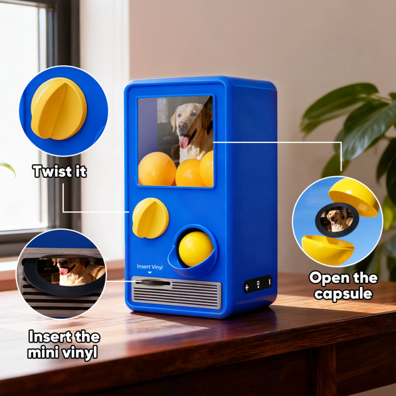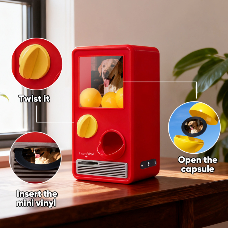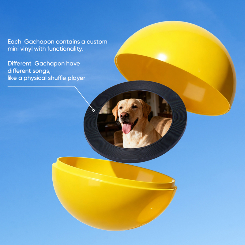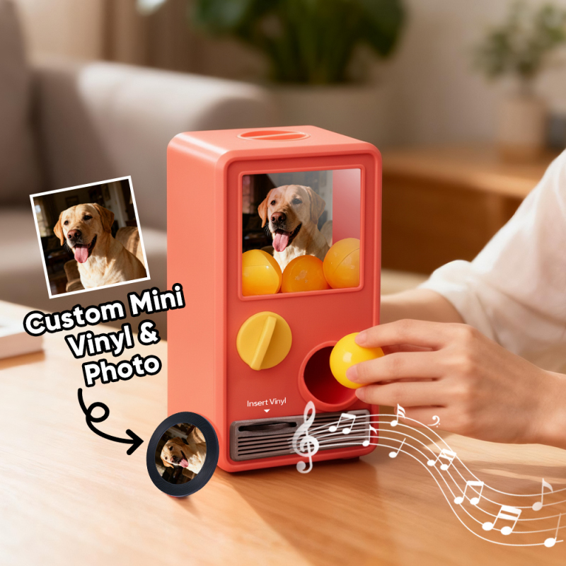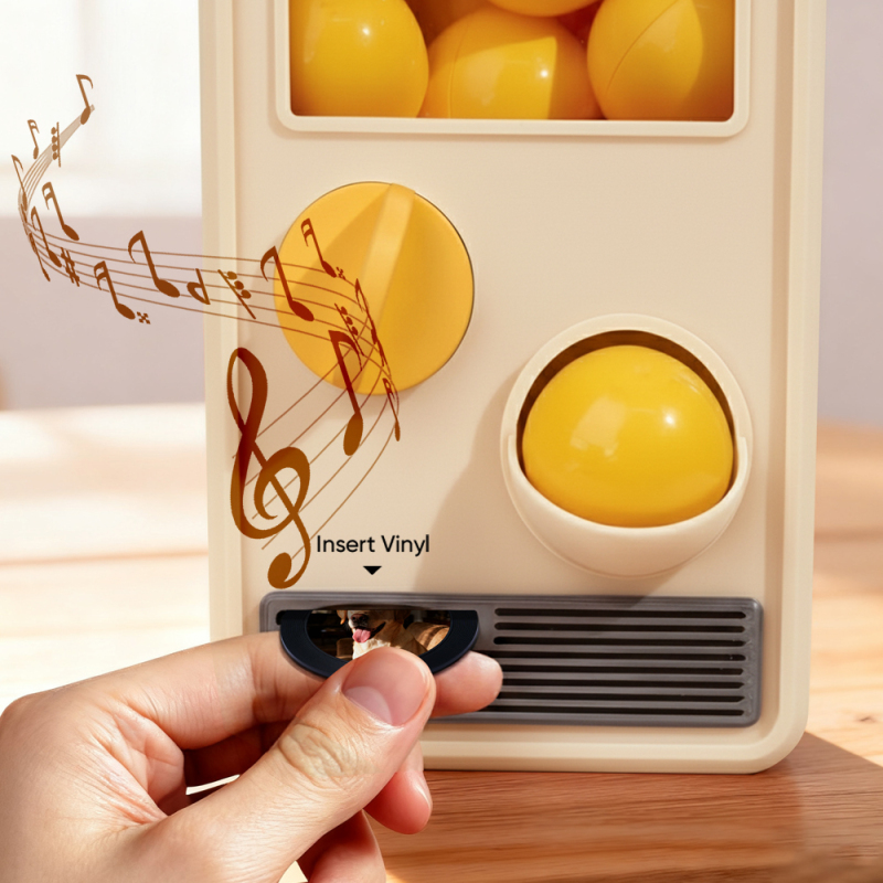 Discover the joy of music and surprise with our Music Gachapon Machine! Modeled after a classic toy capsule dispenser, this charming unit holds up to 7 gachapon balls—each containing a unique, customizable CD record inside. Personalize every disc with a special song and a photo that holds meaning, then let the machine bring your creations to life with instant playback.