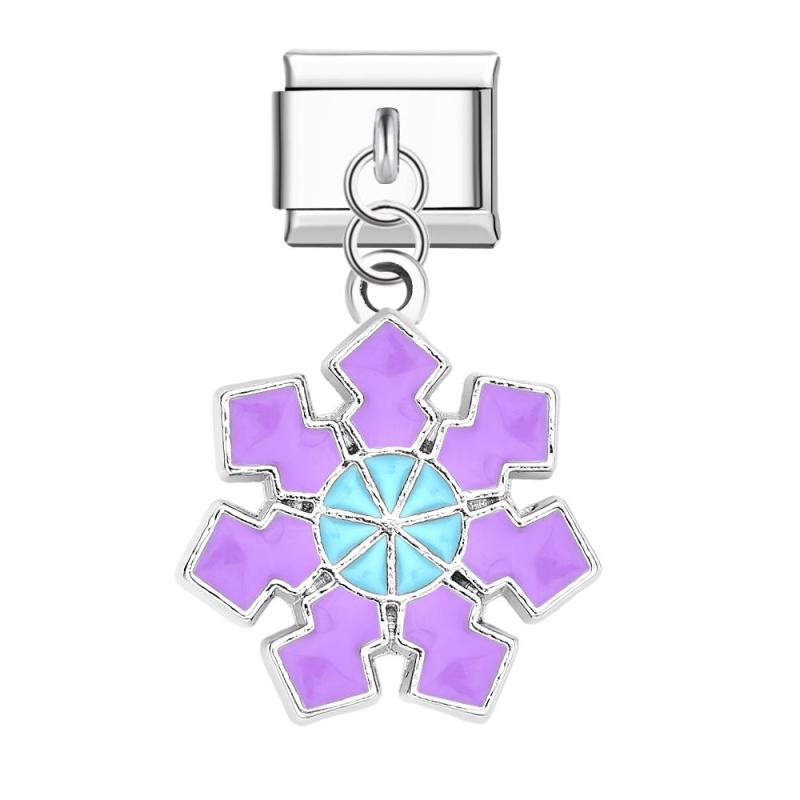 Purple-blue Snowflake Italian Charm For Italian Charm Bracelets Composable Link Christmas Gift