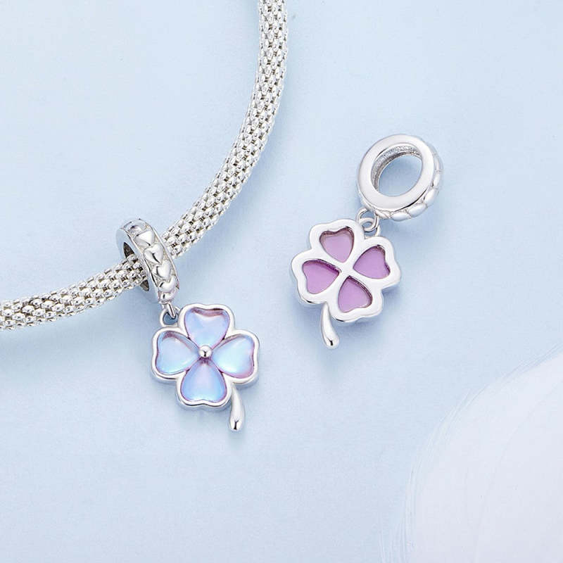 Purple Four Leaf Clover Dangle Charm Silver