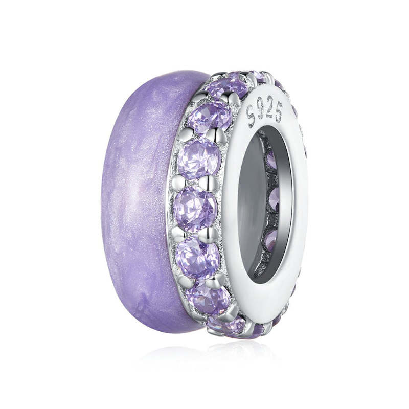 Purple Zircon Stopper Charm Spacer Charm Silver