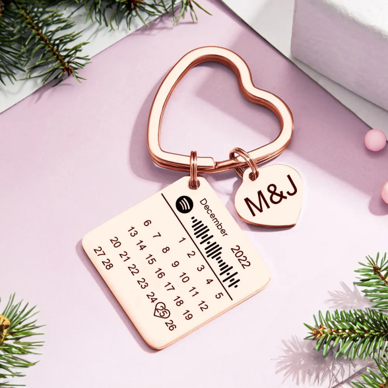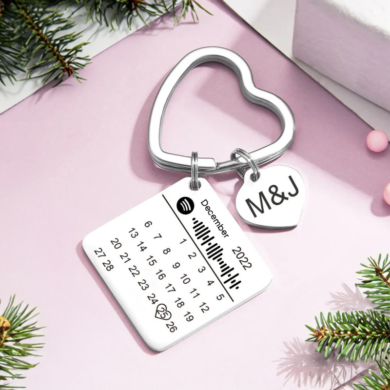 Custom Spotify Calendar Custom Calendar Photo Keychain Anniversary Gifts Heart Shape Keychain Christmas Gift