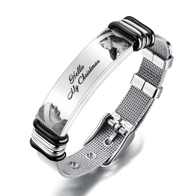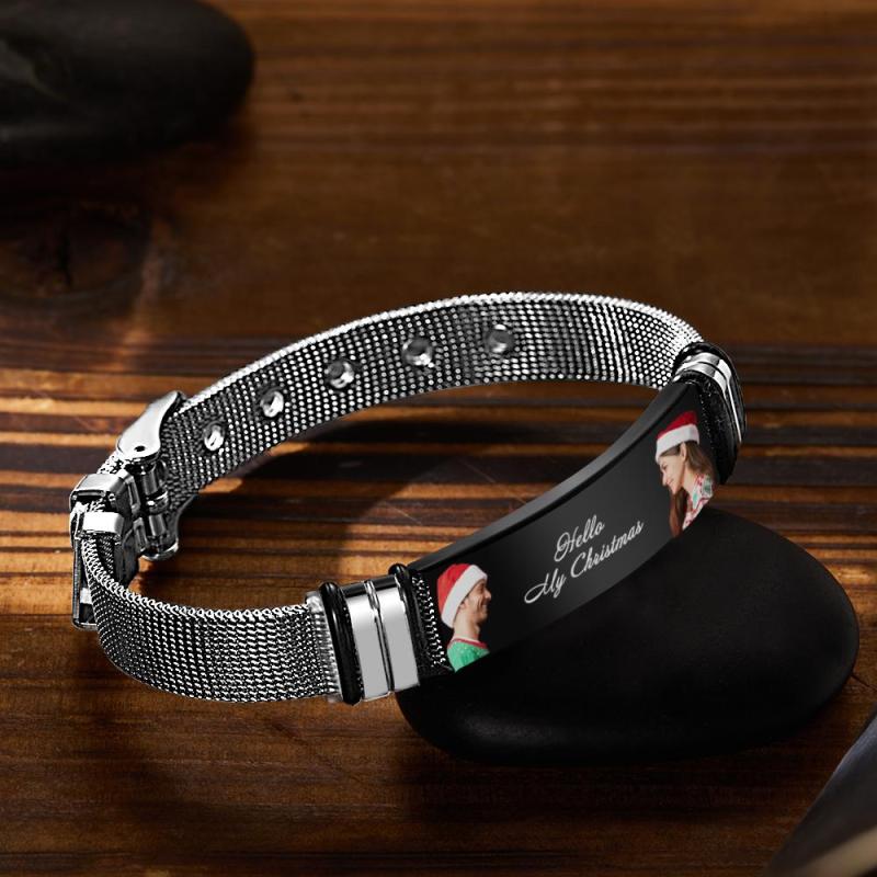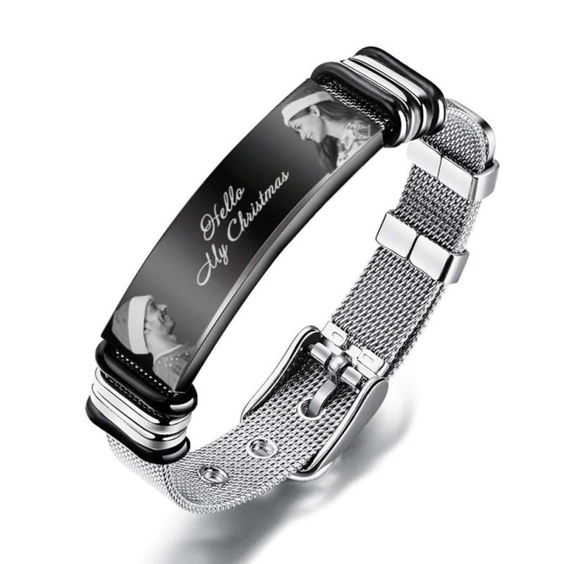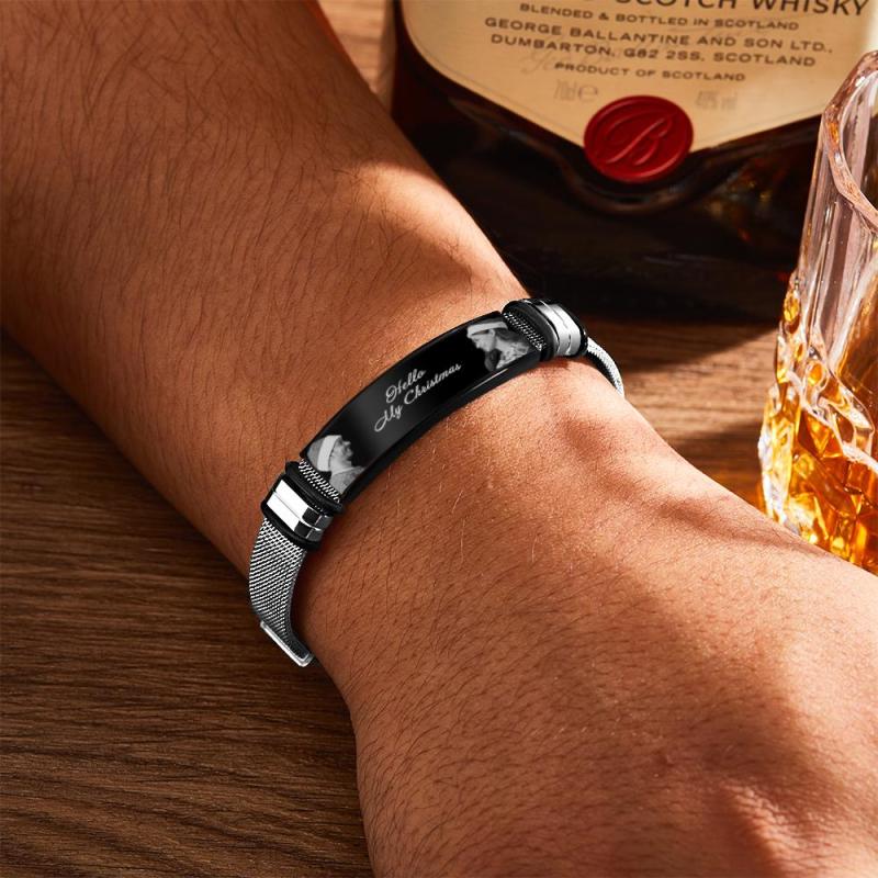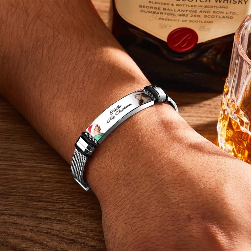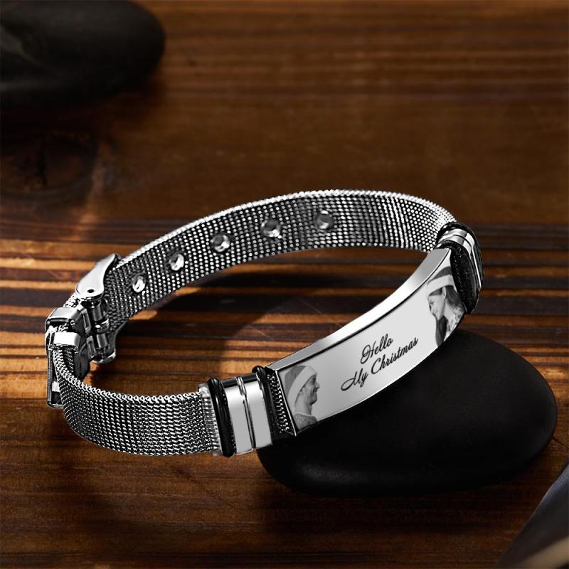Custom Mens Bracelet With Double Photo And Engraved Words Christmas Gift For Your Loved Ones
