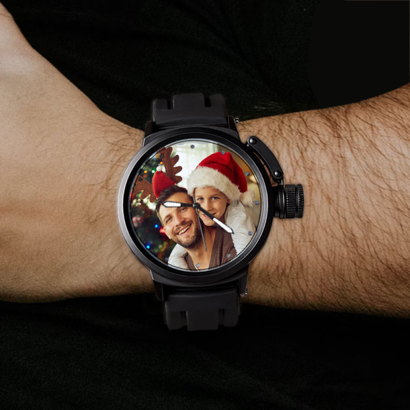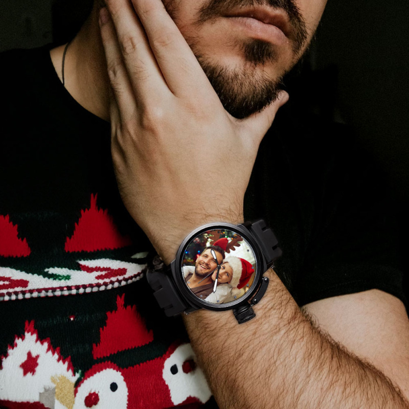 Print your face all over a real men's sport watch. Cheer you up or show your love and support for your loved one with your awesome idea.To get started, upload your photo, our design team will work hard to get a perfect cutout of your face from your uploaded photo.Designed for fashion men, stylish and personalized.Medium custom 100% plastic quartz watch, high quality.Soft custom plastic watch strap and hard plastic watch winder.
