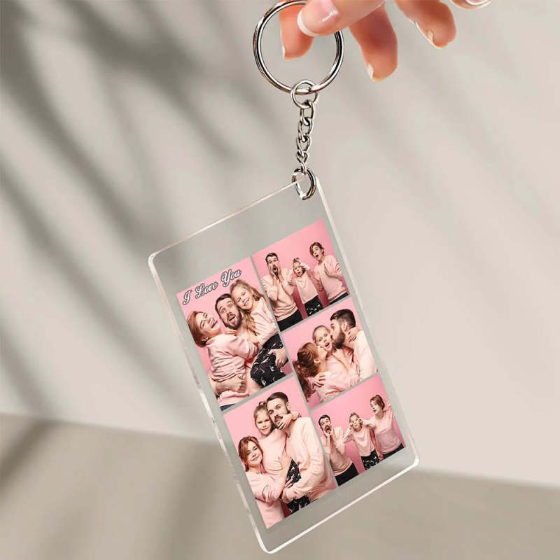 Custom Multi Photo Acrylic Keychain Personalized Collage Photo Key Ring for Lover