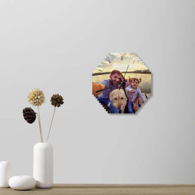Build your own wall clock just like an puzzle!Stone effect wall clock.Printed using the very latest UV digital print technology for vibrant long-lasting color, this free-standing or wall-mounted display can be dismantled and re-assembled for fun interaction with the personalized print.Make the perfect gift for a friend, teacher coworker or family member. Whoever they're for these large blocks make the perfect gift.Accurate time-keeping with a quiet motor: The long shaft clock mechanism provides high accuracy and reliability.