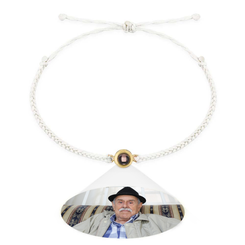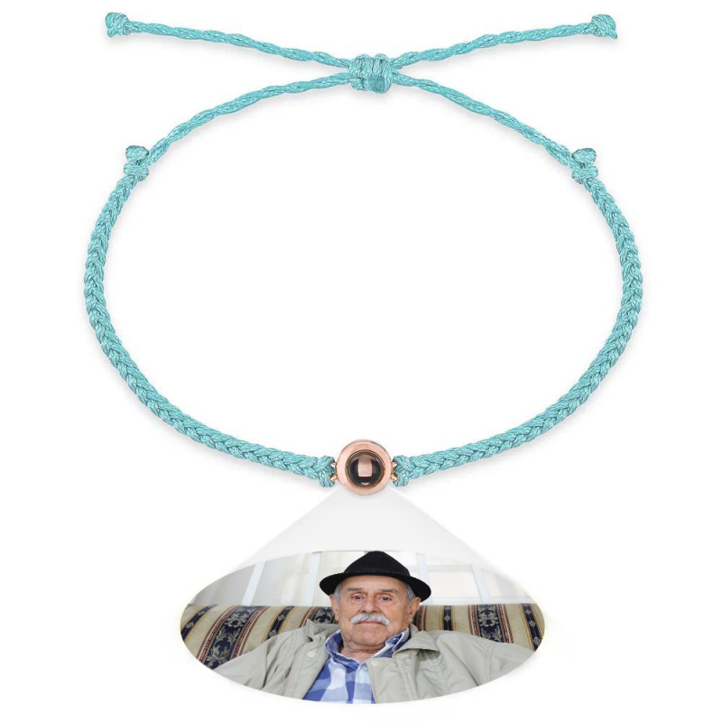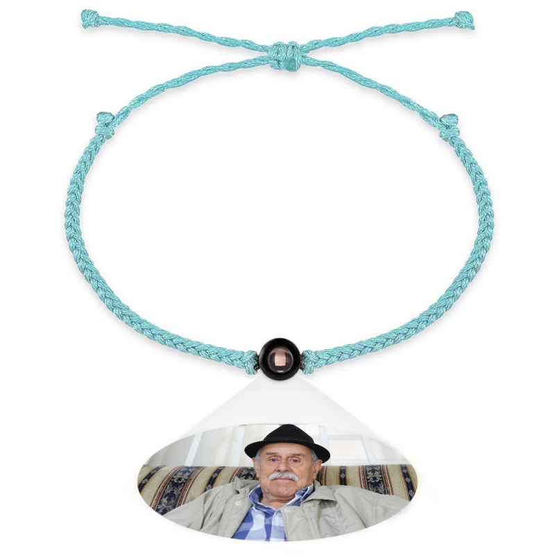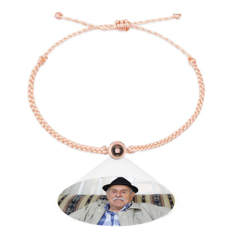 Personalized Photo Projection Couple Bracelet Braided Black Rope Bracelet Gift for Parents and Grandparents