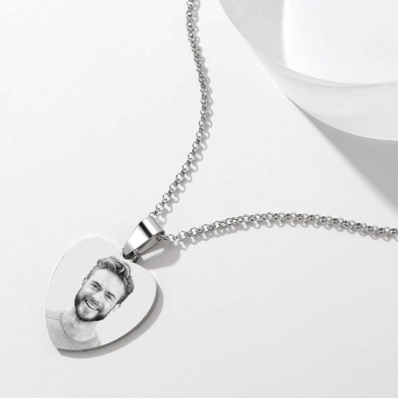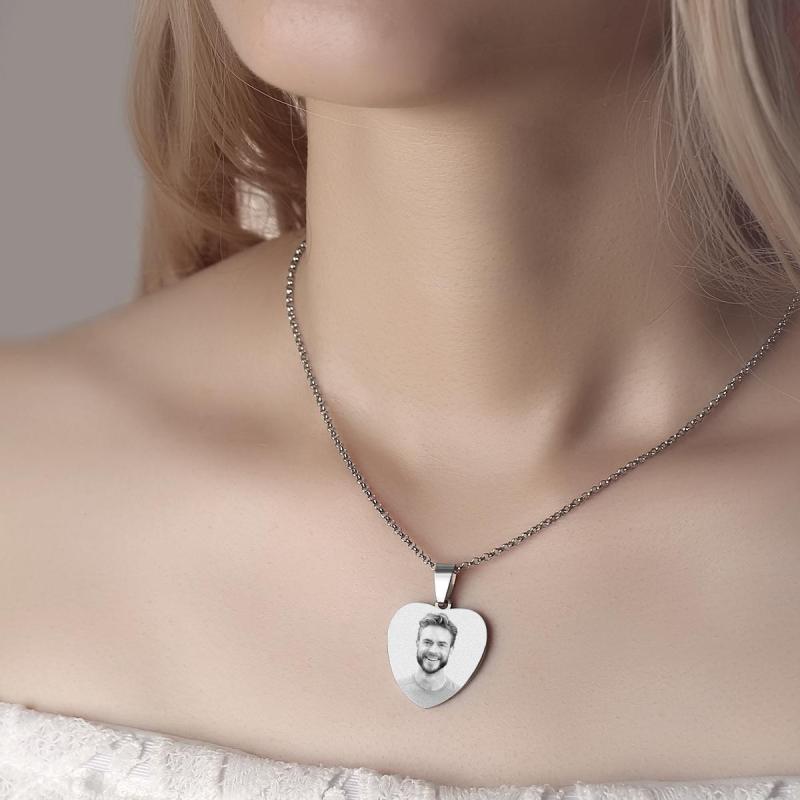 Women's Heart Photo Engraved Tag Necklace With Engraving Stainless Steel Boy's Gifts
