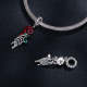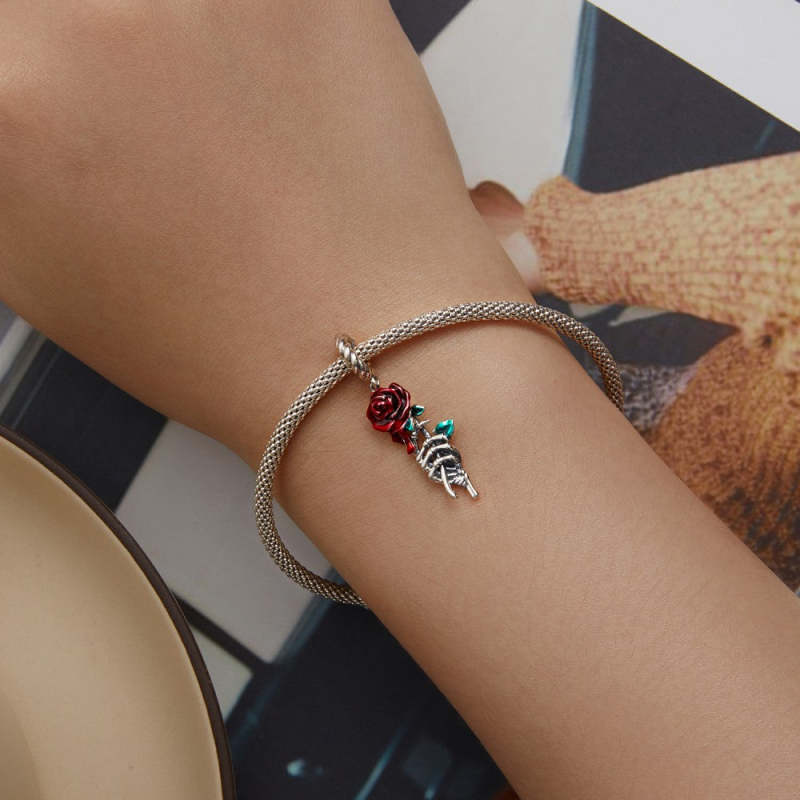 Red Blood Rose Dangle Charm Silver