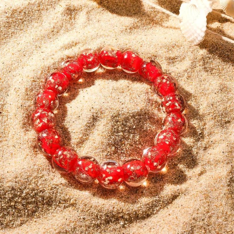 Red Firefly Glass Stretch Beaded Bracelet Glow in the Dark Luminous Bracelet