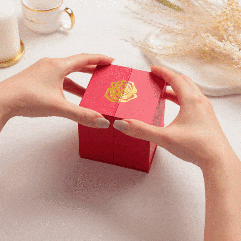 Elevate your style with our exquisite jewelry box, elegantly crafted in the shape of a delicate rose. This gift box has a creative form that can be lifted and lowered. Perfect for storing your cherished jewelry pieces, it's also a thoughtful gift that combines the eternal allure of roses with the elegance of fine jewelry. Discover the fusion of nature and luxury in one enchanting piece.