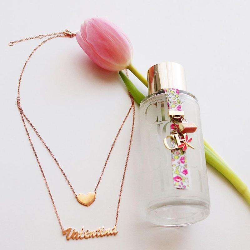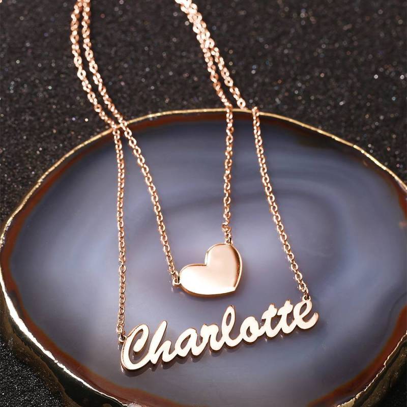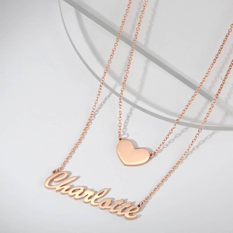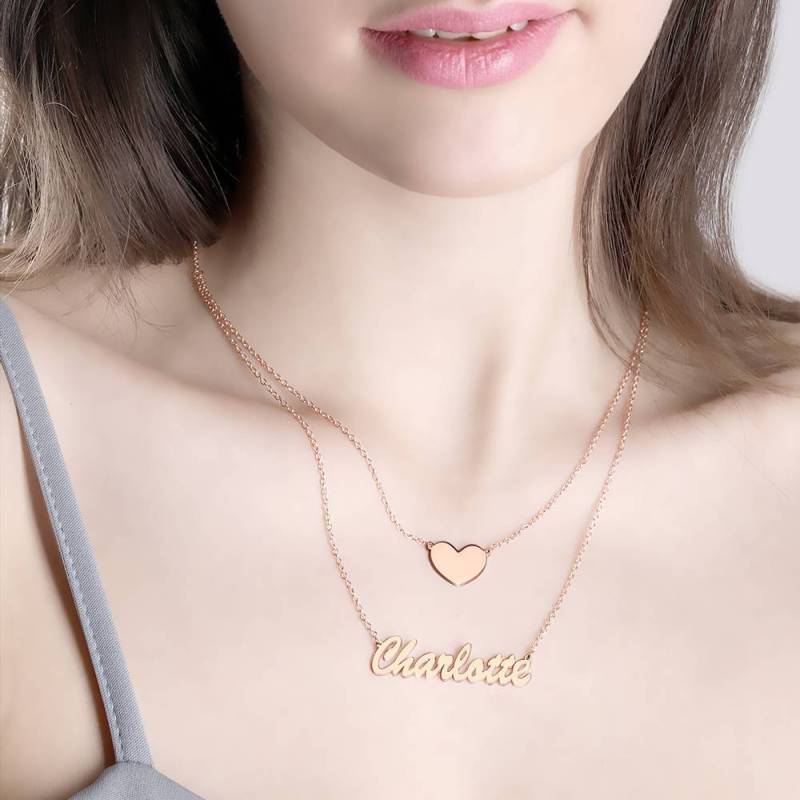 Two Layers Personalized Heart Name Necklace Rose Gold Plated Silver