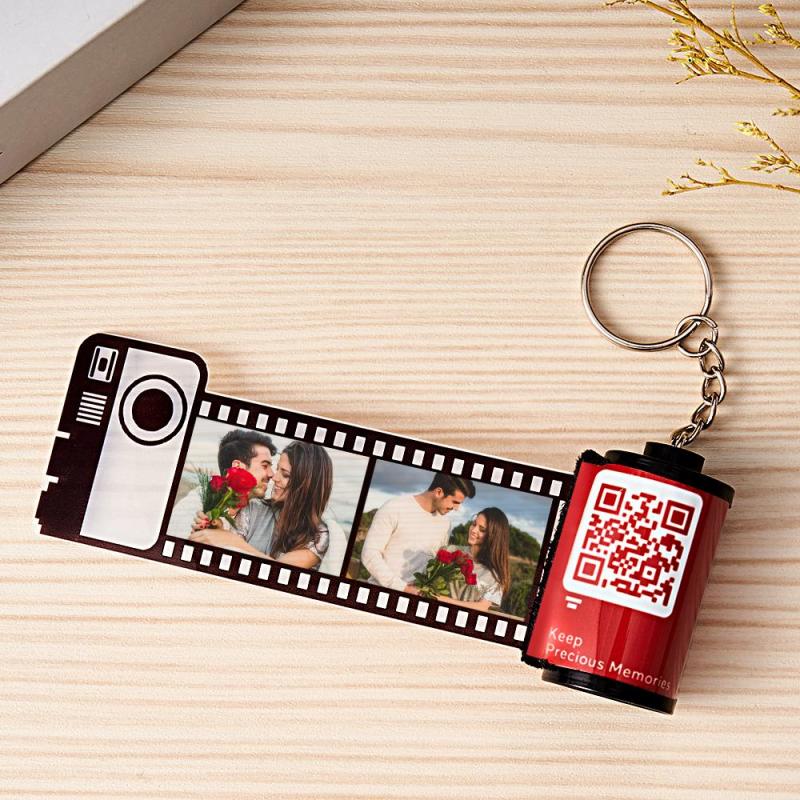 Scannable QR Code Colorful Shell Film Roll Keychain With Your Photo Camera Keychain Valentine's Day Gift