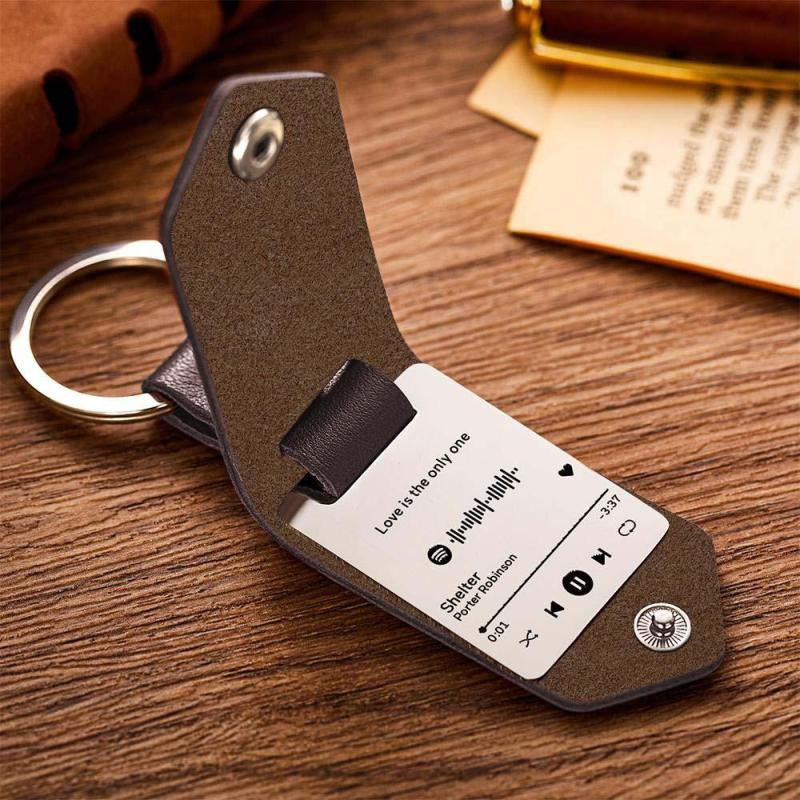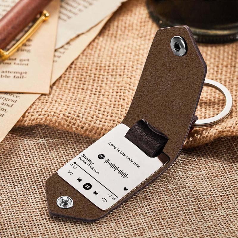 Scannable Spotify Code Keychain Custom Engraved Music Song Keychains Leather Gifts for Couple