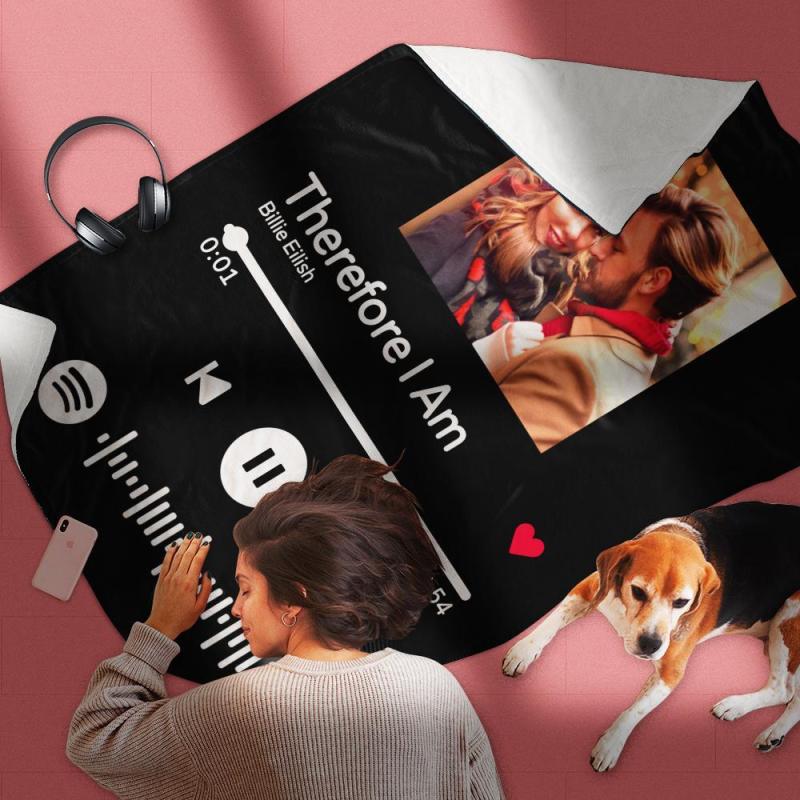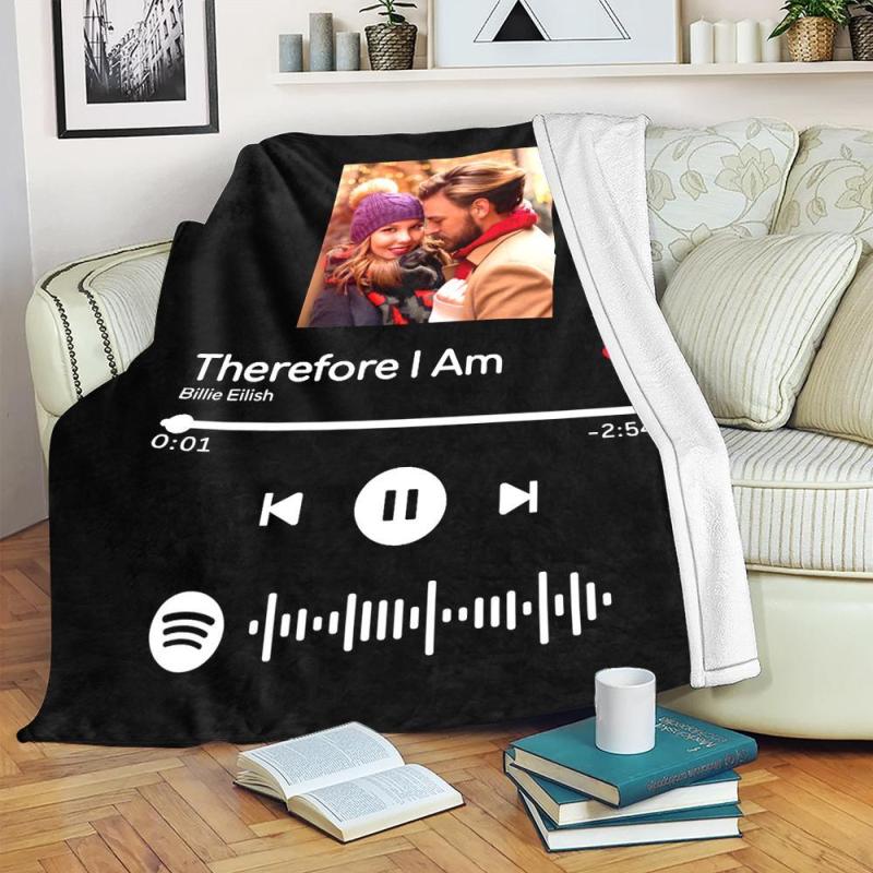 Scannable Spotify Code Photo Engraved Black Blanket Gifts for Couple Warm Thicken Blanket Optional Thickness Cozy Winter Warm Gifts