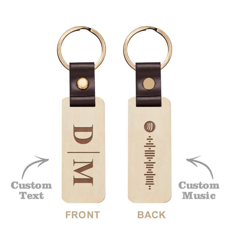 Scannable Spotify Code Wood Keychain Vintage Engraved Keychain For Him