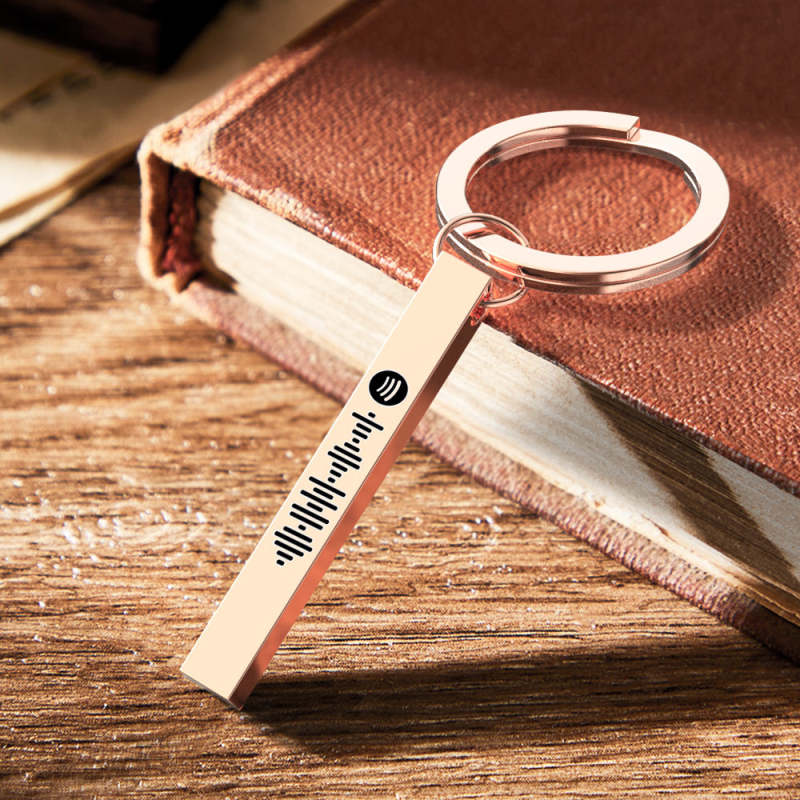 Scannable Spotify Code Keychain Custom 3D Engraved Vertical Bar Keychain Stainless Steel