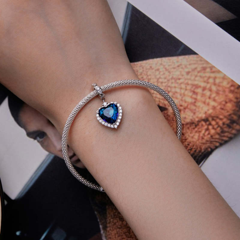 Sea Heart Love Blue Dangle Charm Silver Gifts for Her