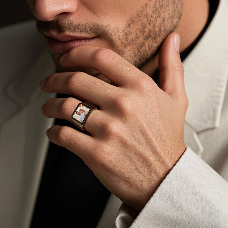 Signet Rings Solid Polished Stainless Steel Biker Ring for Men Women Stainless Steel Metal Plated Text Engraving Photo Custom